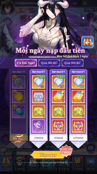 + Mỗi ngày tiêu 60 vé -> nhận quà Tích Nạp Ngày nhận Naruto và Skin Naruto