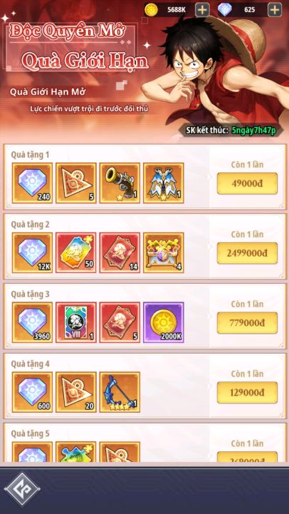 - Các gói trả phí cực kỳ ưu đãi mà Chiến Binh chỉ có thể mua duy nhất 1 lần trong suốt quá trình chơi game, và các gói này cũng chỉ tồn tại duy nhất trong 7 ngày mở MCM