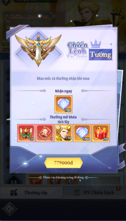 - Mỗi Chiến Binh chỉ được mua Chiến Lệnh này 1 lần duy nhất trong suốt vòng đời chơi game