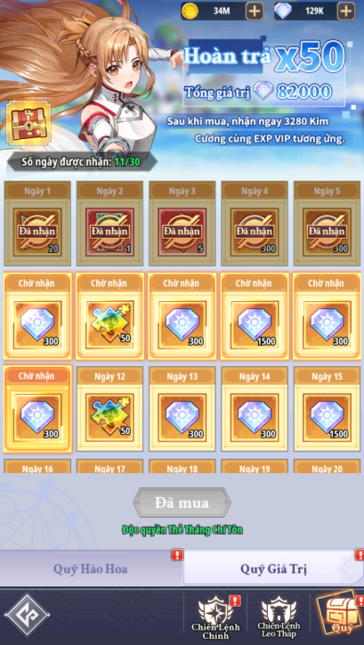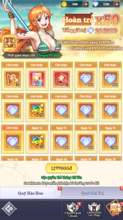 - Khi người chơi mua gói, mỗi ngày đăng nhập sẽ được nhân thưởng