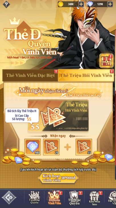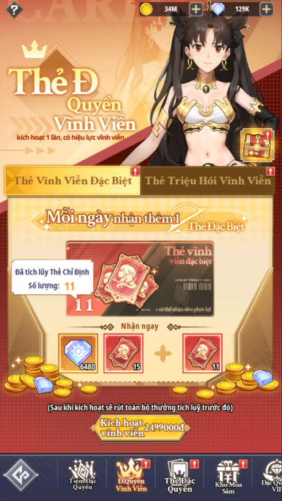- Có 2 loại Đặc Quyền Vĩnh Viễn bao gồm: Thẻ Vĩnh Viễn Đặc Biệt & Thẻ Triệu Hồi Vĩnh Viễn